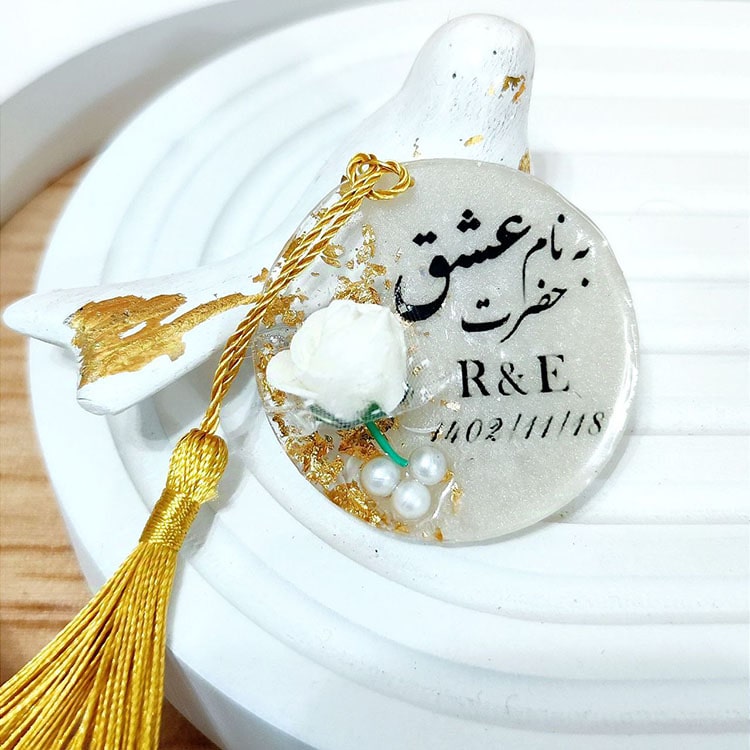 گیفت سفارشی عروسی با طراحی زیبا و طرح رزین
