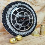 ✔ قاب کریستالی: لبههای ساعت با سنگهای کریستالی مشکی و نقرهای تزئین شده که زیبایی آن را چند برابر میکند