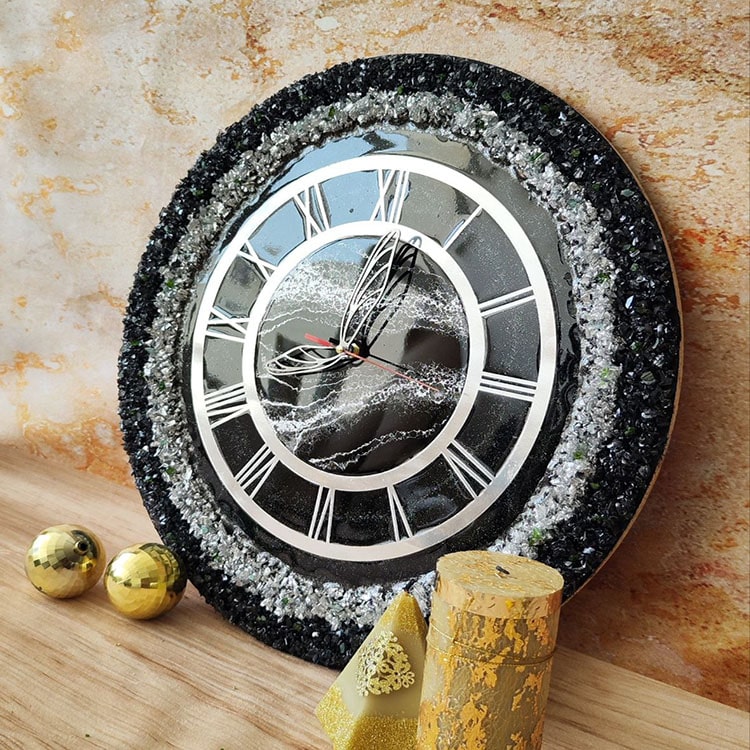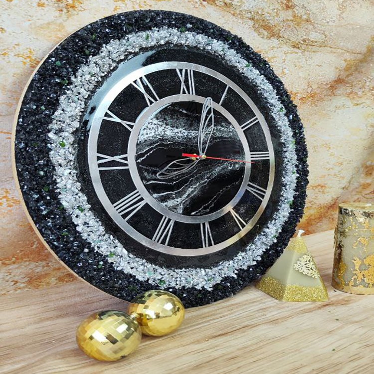 ✔ متریال: ساخته شده از رزین اپوکسی باکیفیت، کریستالهای شفاف و اعداد رومی فلزی
